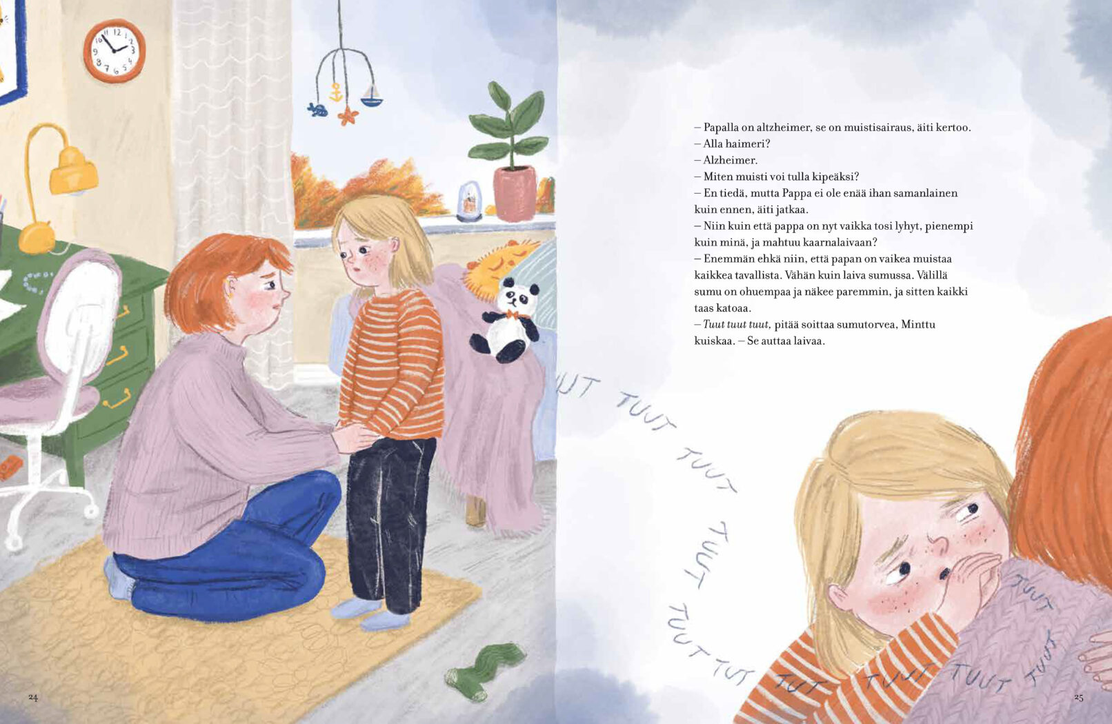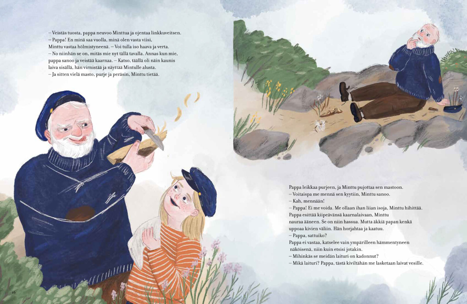 A touching picture book about a grandfather who disappears into dementia. Katriina Rosavaara wrote the story of an old sea captain born in Viipuri and his grandchild, of their relationship and how to adjust to be left on on the other side of the fog.