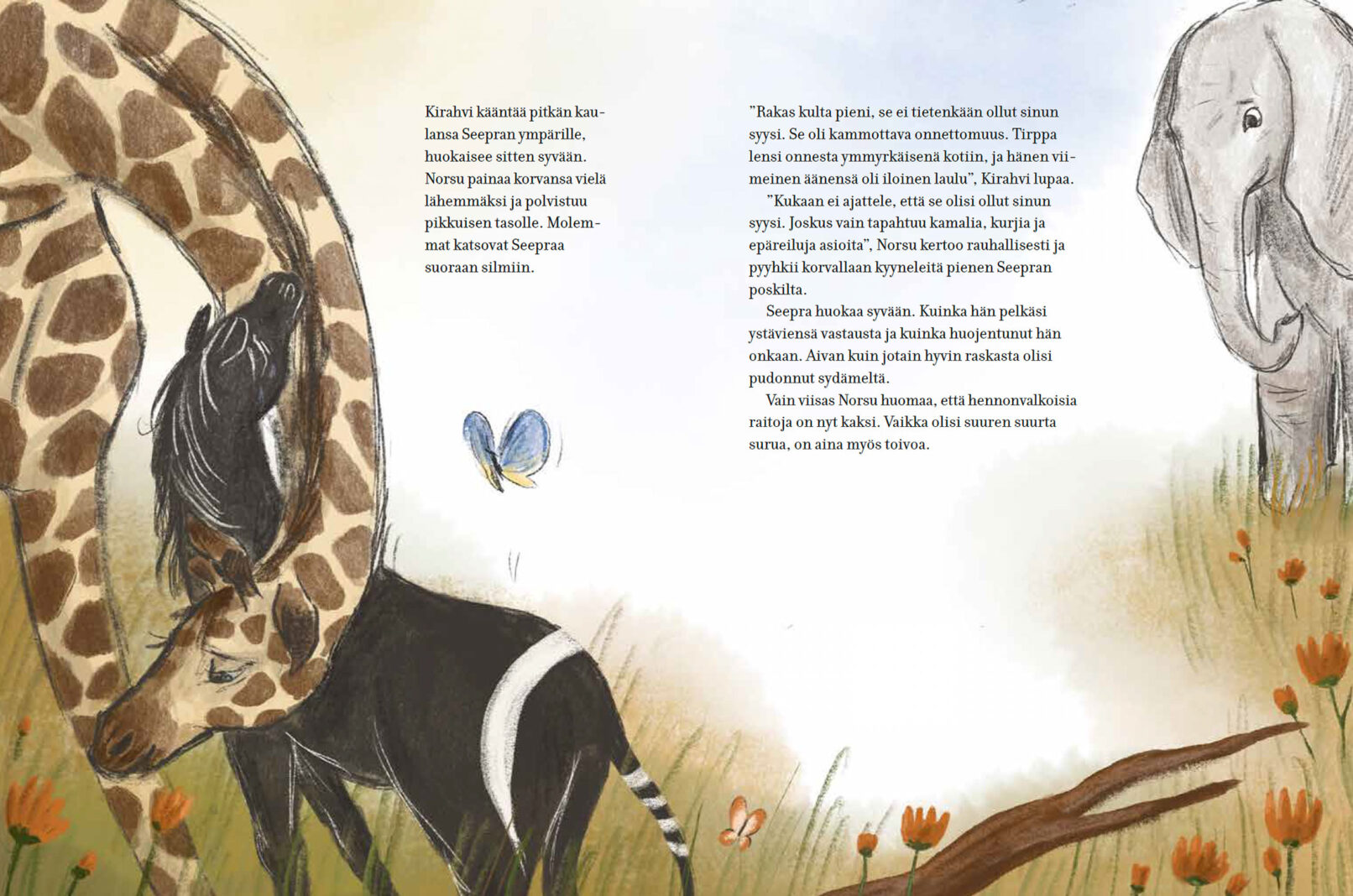 I illustrated Maaret Kallio’s book, a children’s story that explores a child’s grief and hope in the face of death. Through a carefully crafted visual world, the illustrations support the narrative and invite readers to meet difficult emotions together—giving grief space, presence, and words.